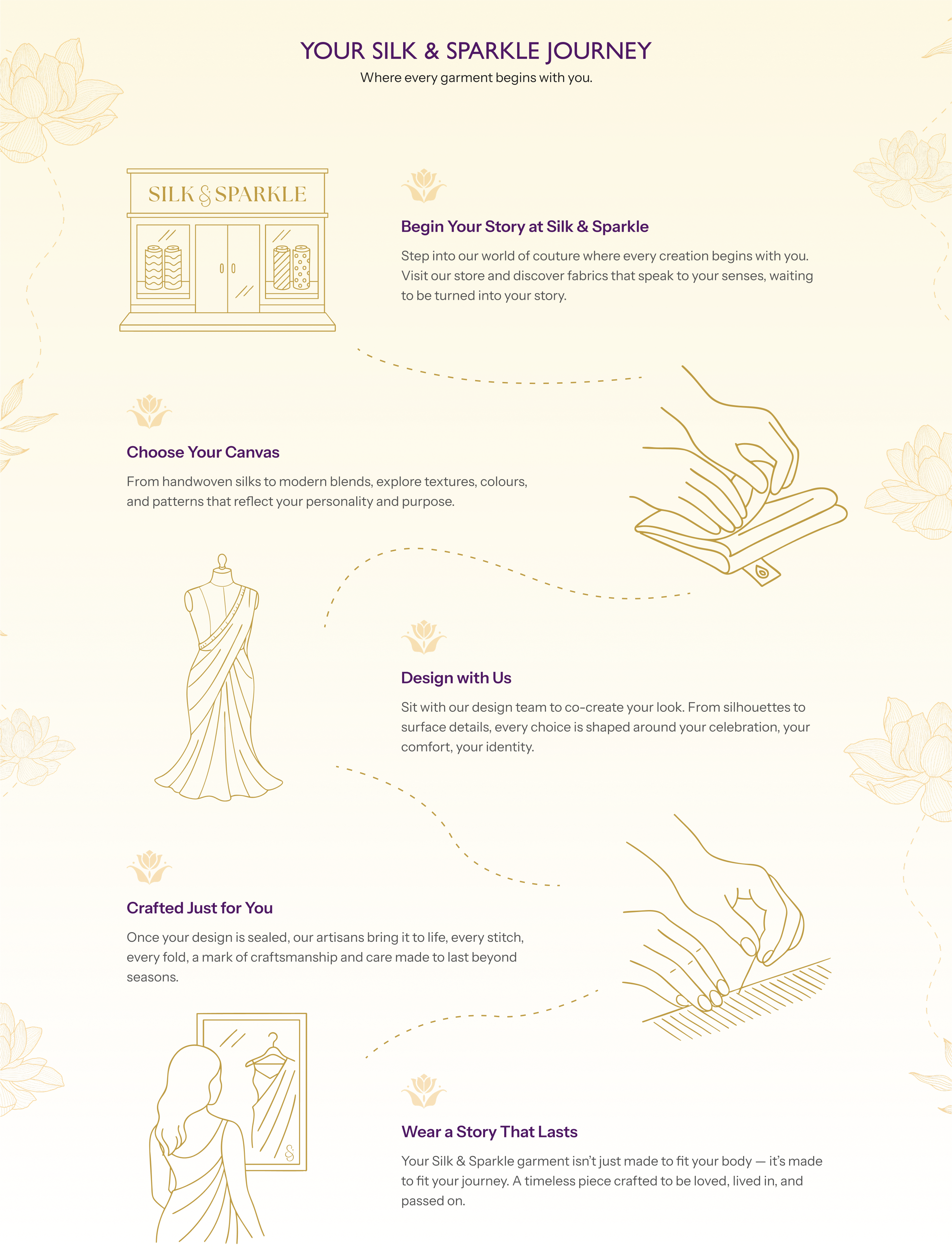 Our artisans bring your vision to life, one stitch, one shimmer at a time. A garment made to be lived in and loved for life.