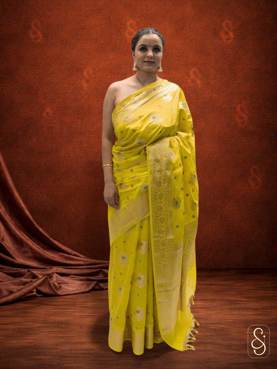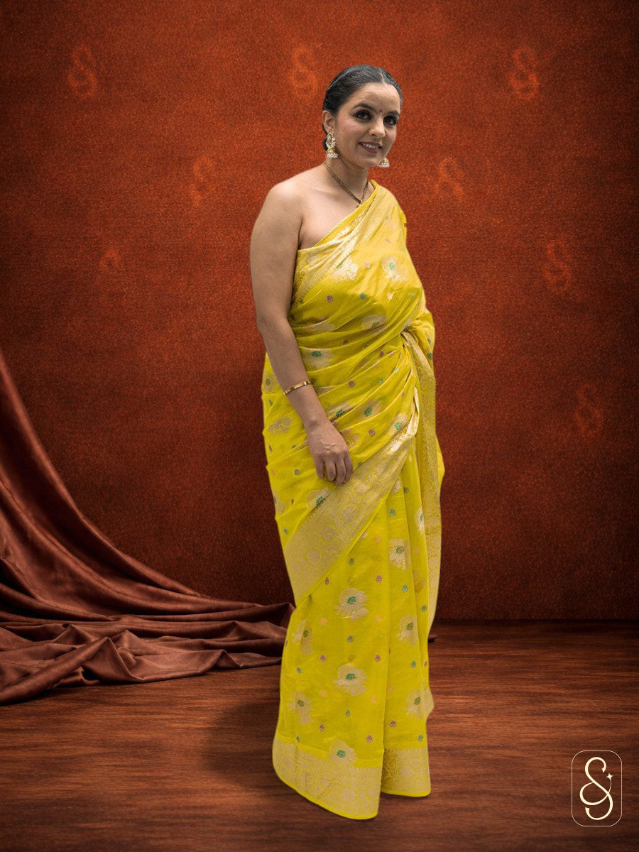 Bright Yellow Banarsi Georgette Saree