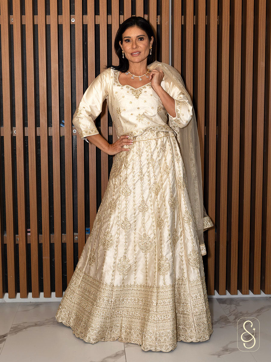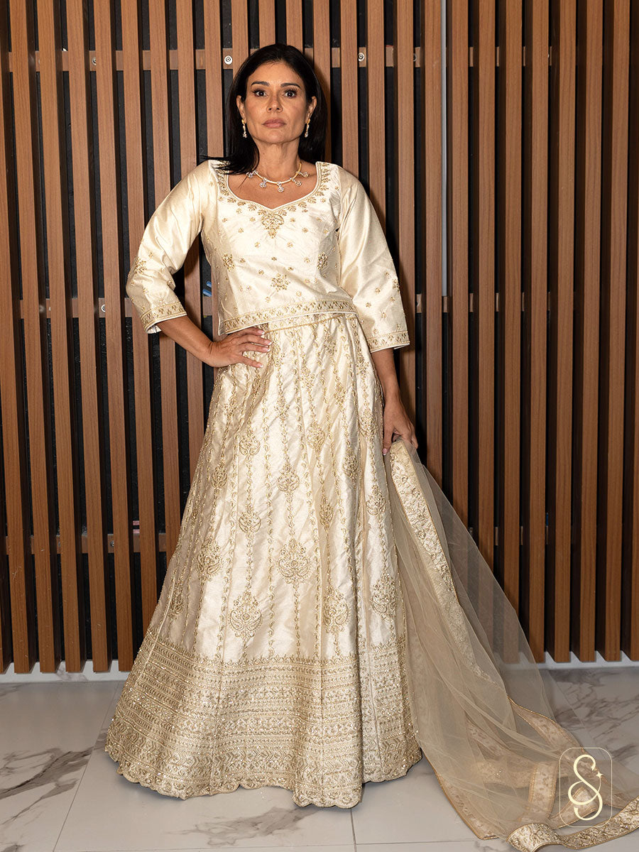 Silk and Sparkle presents a beautiful viscose silk lehenga. The lehenga has full embroidery work. The embroidery catches the light perfectly with a soft net dupatta that completes the look. The viscose silk fabric feels comfortable, as it drapes beautifully on your body. This outfit works perfectly for special occasions, weddings, and festivals. The design brings elegance to celebrations.